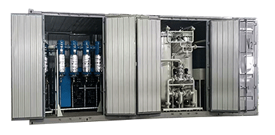 將全套制氮設備以集裝箱式獨立模塊呈現(xiàn),使用過后方便運輸遷移