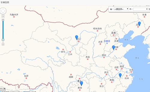 車輛信息管理功能,可在地圖上查閱所有車輛標(biāo)注當(dāng)前位置及點(diǎn)擊某個(gè)具體的車輛,顯示該車輛的車牌號(hào)、車輛類型、車輛名稱、車輛狀態(tài)、車輛經(jīng)緯度坐標(biāo)、車輛及功能描述詳情。