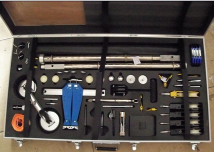 三米長的搭桿前端安裝特種接桿保證將錨鉤及防脫掛鉤牢牢地鉤著可疑爆炸物。兩套撐桿、多個脫繩定滑輪及球型卡塊的配合使用可完成可疑爆炸物的多變向轉移。在轉折點安放脫繩定滑輪之前視其環境選擇滑杠卡緊器、楔釘、粘性固定板、真空吸盤、撐桿、主鎖其中一種或二種,首先固定在預選位置,然后將滑輪掛在其上。在轉移可疑爆炸物過程中為防止手拽主繩滑脫可使用抓繩器。在排爆現場發現有可疑零散物時可將其放入簸箕內用鉤繩滑輪等器具將其拖至目的地。