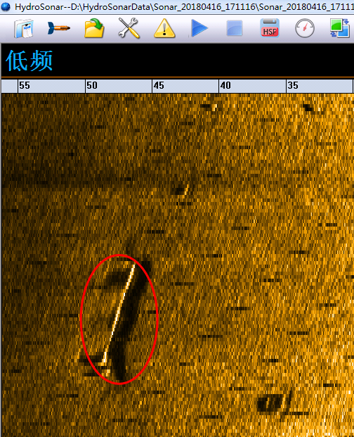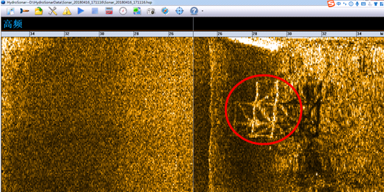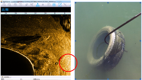 4.4汽車輪胎(水雷形狀目標)測深聲納圖像。