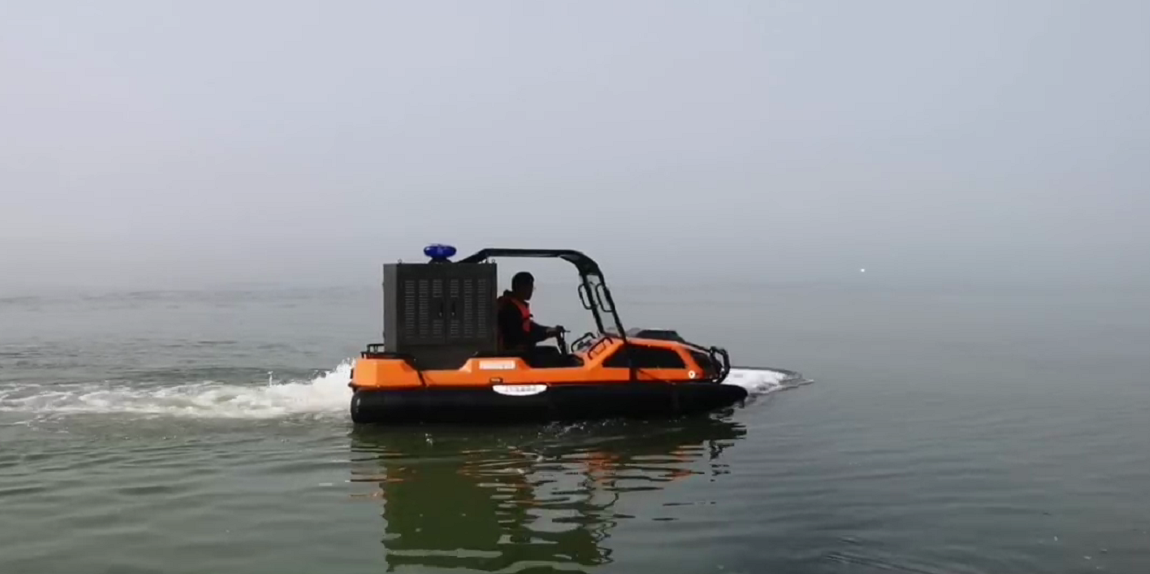 針對水災頻發(fā)的地區(qū),水域救援任務(wù)必不可少。但往往洪澇災害、城市內(nèi)澇往往伴隨著惡劣的天氣和崎嶇的地形,沖鋒舟需要多次搭載不同交通工具并數(shù)次轉(zhuǎn)移,水陸兩棲全地形車可以輕松通過水淹、泥濘、沼澤等環(huán)境,無需人力搬運,實現(xiàn)陸地駕駛和水中行走自由切換,以最快的時效抵達現(xiàn)場實施救援。