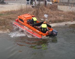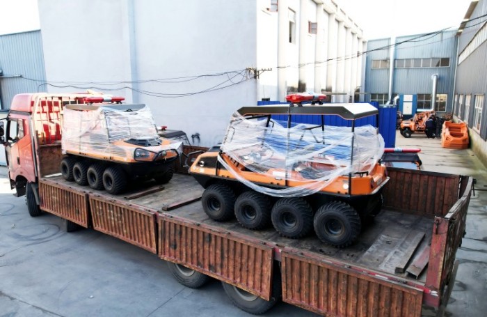 針對水災(zāi)頻發(fā)的地區(qū),水域救援任務(wù)必不可少。但往往洪澇災(zāi)害、城市內(nèi)澇往往伴隨著惡劣的天氣和崎嶇的地形,沖鋒舟需要多次搭載不同交通工具并數(shù)次轉(zhuǎn)移,水陸兩棲全地形車可以輕松通過水淹、泥濘、沼澤等環(huán)境,無需人力搬運,實現(xiàn)陸地駕駛和水中行走自由切換,以最快的時效抵達現(xiàn)場實施救援。