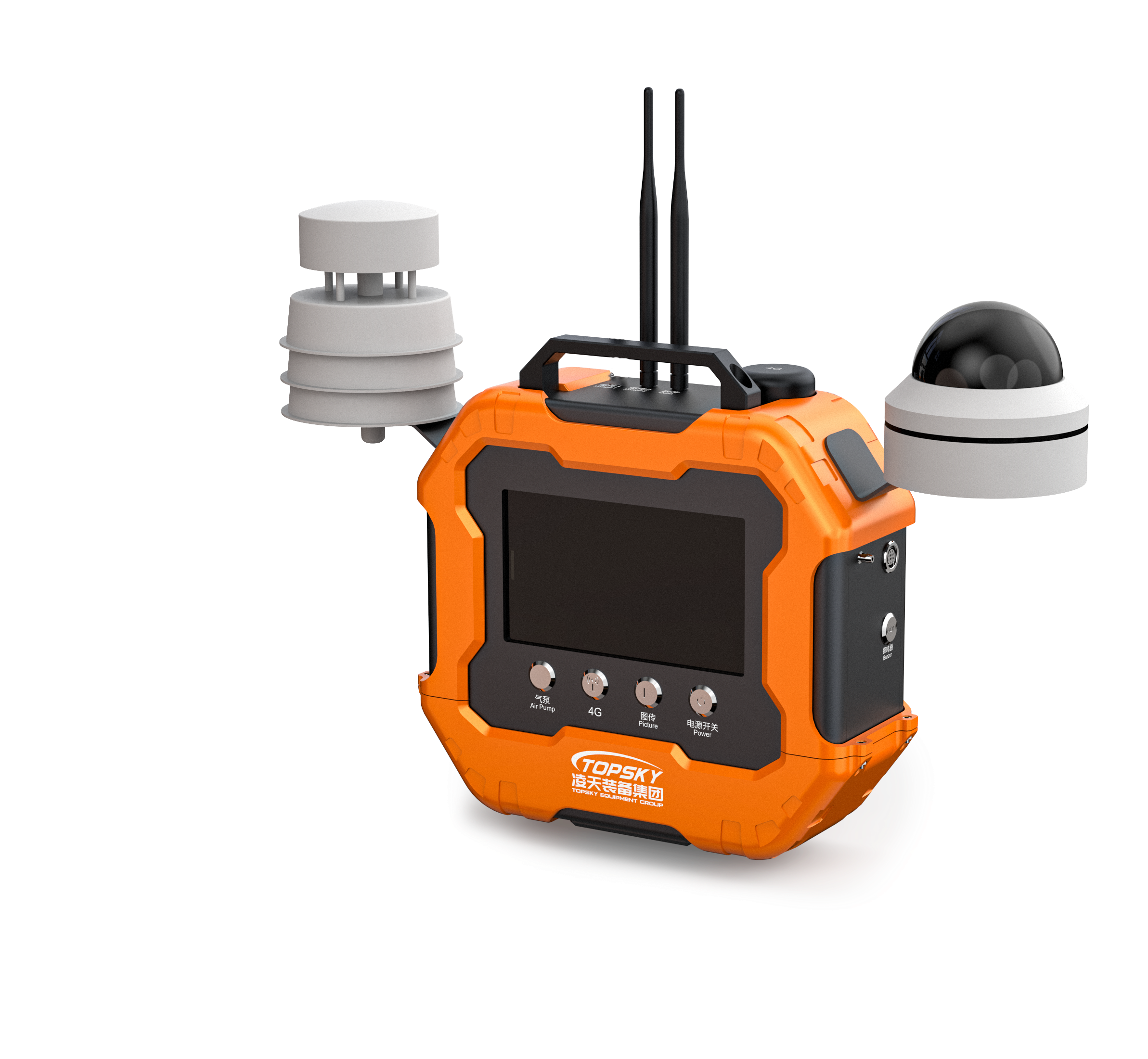 現場采集終端可同時連續檢測12種氣體的濃度、氣象數據(風向、風速、溫度、濕度)、粉塵濃度(PM2.5、PM10)、Gamma輻射強度和現場實時視頻。將采集到的氣體數據、GPS位置、環境參數、視頻畫面等數據通過無線技術傳送至遠程終端查看;同時通過4G傳輸將采集到的氣體數據、GPS位置、環境參數上傳至監管后臺實現無線管理;現場采集終端也可以實現現場實時數據一鍵打印功能。儀器具有氣體濃度調校標定、濃度值超限報警功能、氣象數據超限報警、STEL超限報警和TWA超限報警,一旦設備采集數據濃度值超限,設備立即開啟聲光振動報警進行警示,并將此時數據同步至遠程終端和上傳至平臺。可將多臺探測儀的監測、監控信息上傳,并建立特殊作業場所多功能監測監控系統平臺,保障作業人員的安全。采用新一代主流外觀設計,周身環繞保護套美觀耐用。儀器底部留有三腳架安裝孔,作業時便于儀器快速安放、部署,適用于多種復雜場合工作。