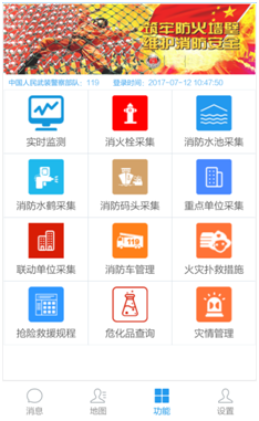 3、數據管理:消火栓采集、消防水池采集、消防水鶴采集、消防碼頭采集、重點單位采集、聯動單位采集、消防車輛管理與指揮中心同步管理,數據監測查詢。